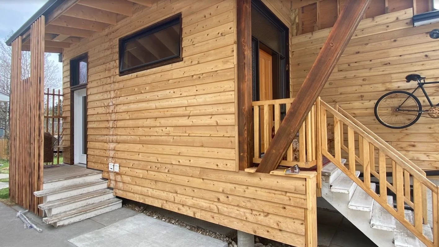 This existing Canmore mountain home is currently under construction to be retrofitted with an energy efficient redesign to reduce its annual heating demand significantly.