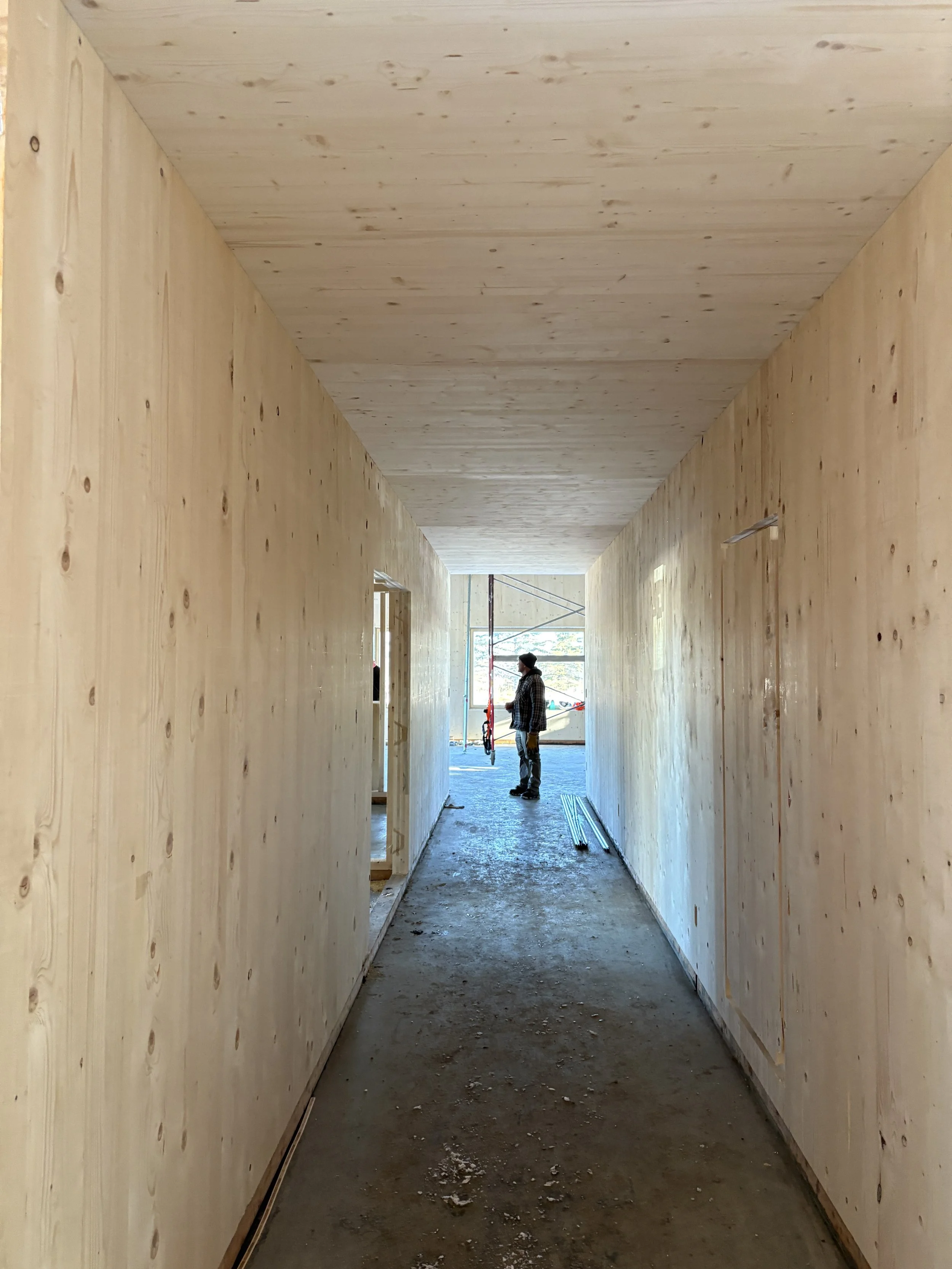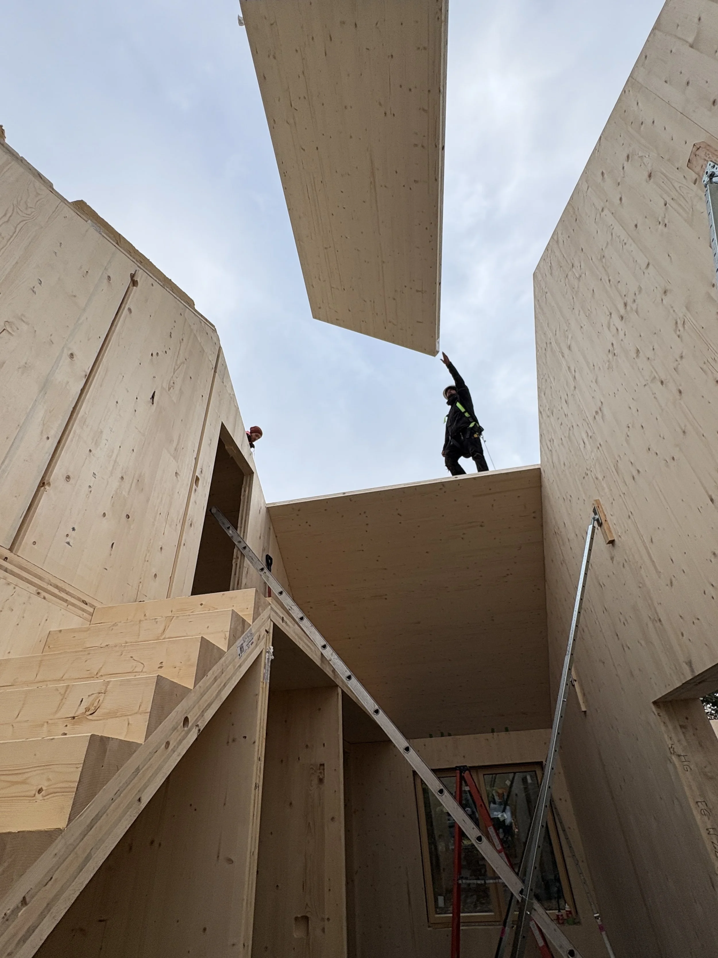 A key feature is the prefabricated mass timber building shell, which allows for greater precision, faster on-site assembly, and reduced construction waste—crucial for meeting Passive House performance targets.